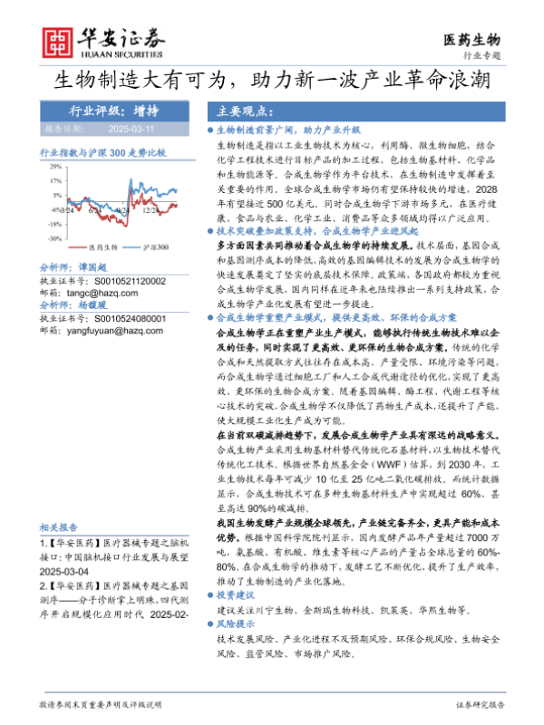 【华安证券】【20250311】医药生物行业专题:生物制造大有可为,助力新一波产业革命浪潮-29页