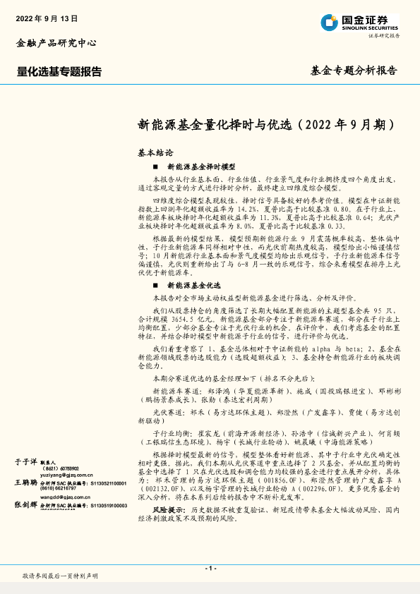 【国金证券】【20220913】量化选基专题报告:新能源基金量化择时与优选(2022年9月期)-20页