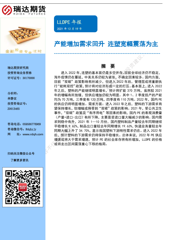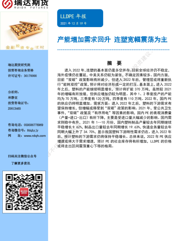 【瑞达期货】【20211219】LLDPE年报:产能增加需求回升,连塑宽幅震荡为主-17页