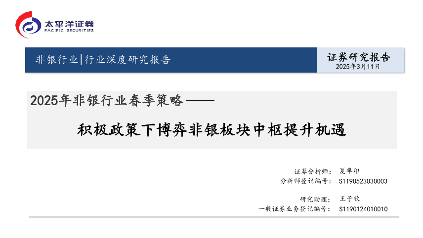 【太平洋证券】【20250311】2025年非银行业春季策略:积极政策下博弈非银板块中枢提升机遇-63页