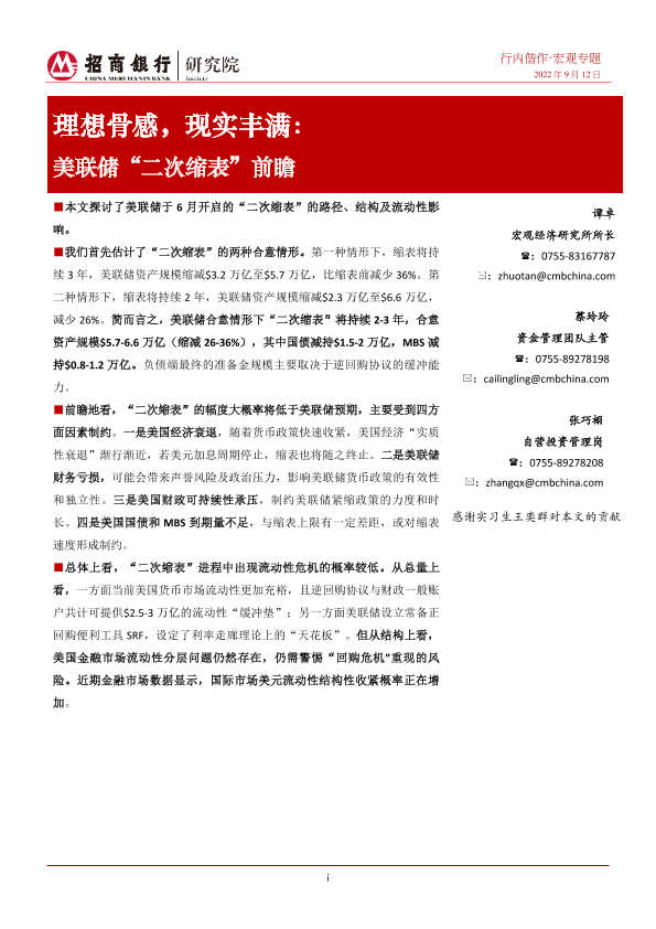 【招商银行】【20220912】美联储“二次缩表”前瞻:理想骨感,现实丰满-18页