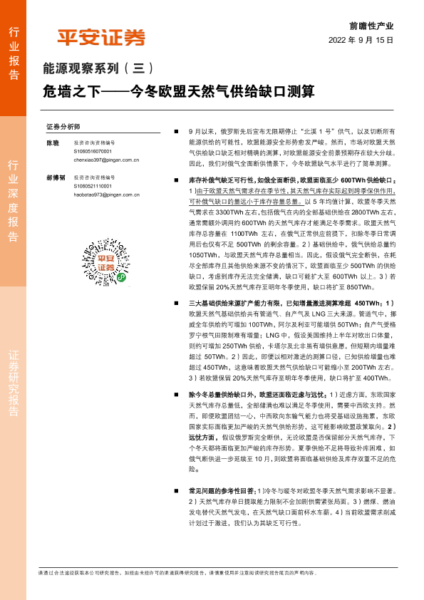 【平安证券】【20220915】危墙之下——今冬欧盟天然气供给缺口测算-18页