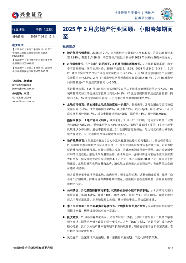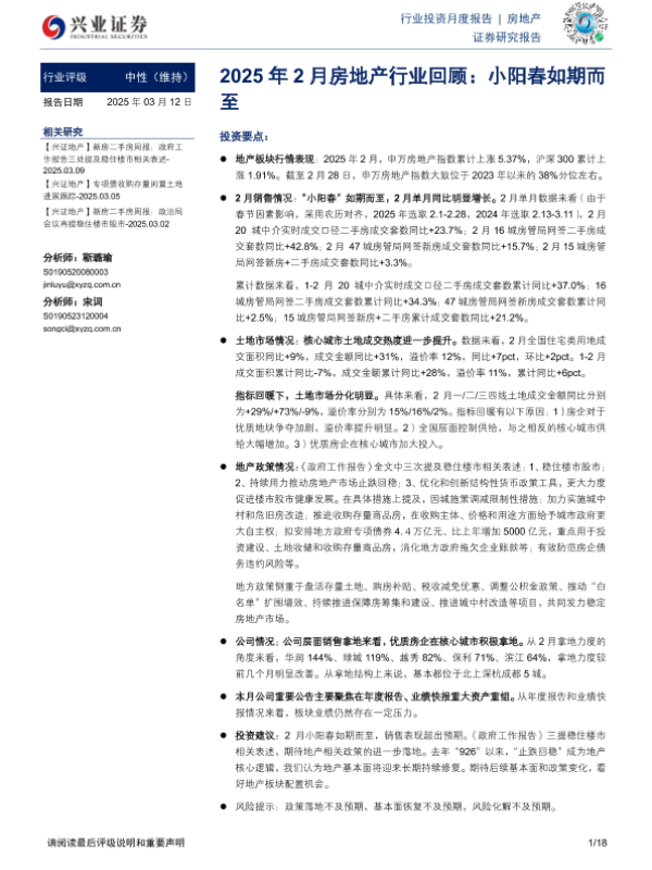 【兴业证券】【20250312】2025年2月房地产行业回顾:小阳春如期而至-18页