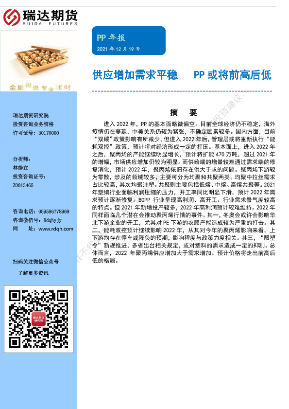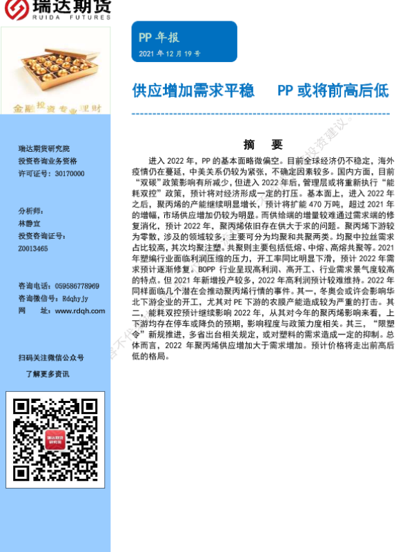 【瑞达期货】【20211219】PP年报:供应增加需求平稳,PP或将前高后低-18页