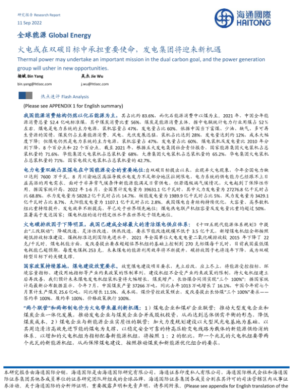【海通国际】【20220911】全球能源:火电或在双碳目标中承担重要使命,发电集团将迎来新机遇-11页