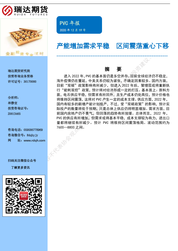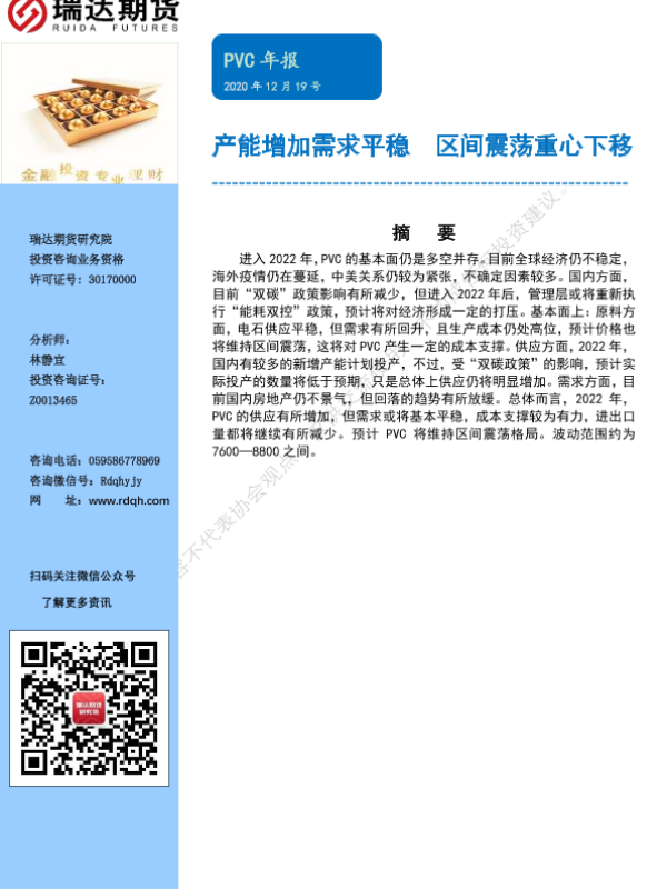 【瑞达期货】【20211219】PVC年报:产能增加需求平稳,区间震荡重心下移-17页