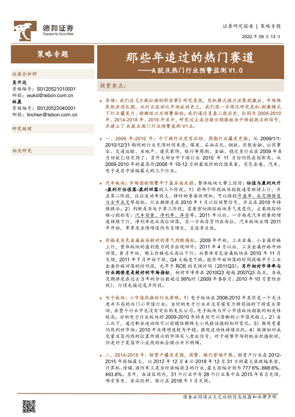 【德邦证券】【20220913】A股及热门行业预警监测V1.0:那些年追过的热门赛道-54页