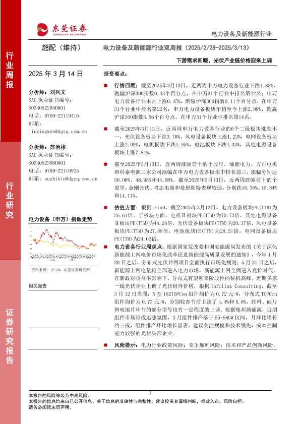 【东莞证券】【20250314】电力设备及新能源行业双周报:下游需求回暖,光伏产业链价格迎来上调-13页