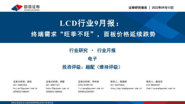 【国信证券】【20220913】LCD行业9月报:终端需求“旺季不旺”,面板价格延续跌势-24页
