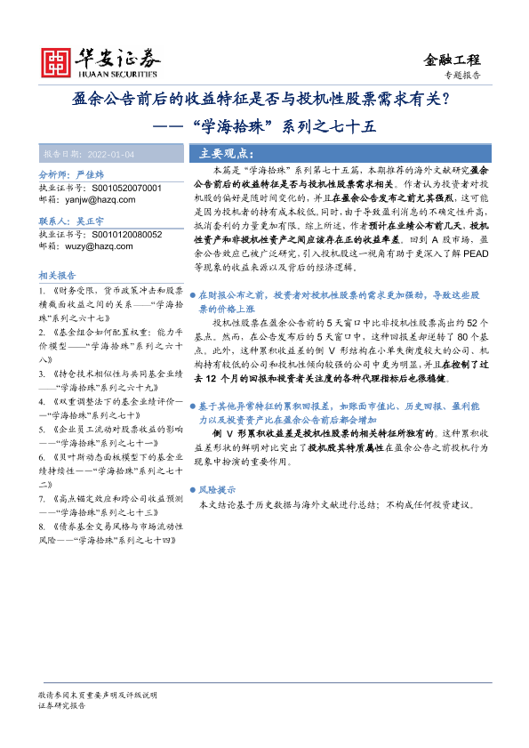 【华安证券】【20220104】盈余公告前后的收益特征是否与投机性股票需求有关?-23页