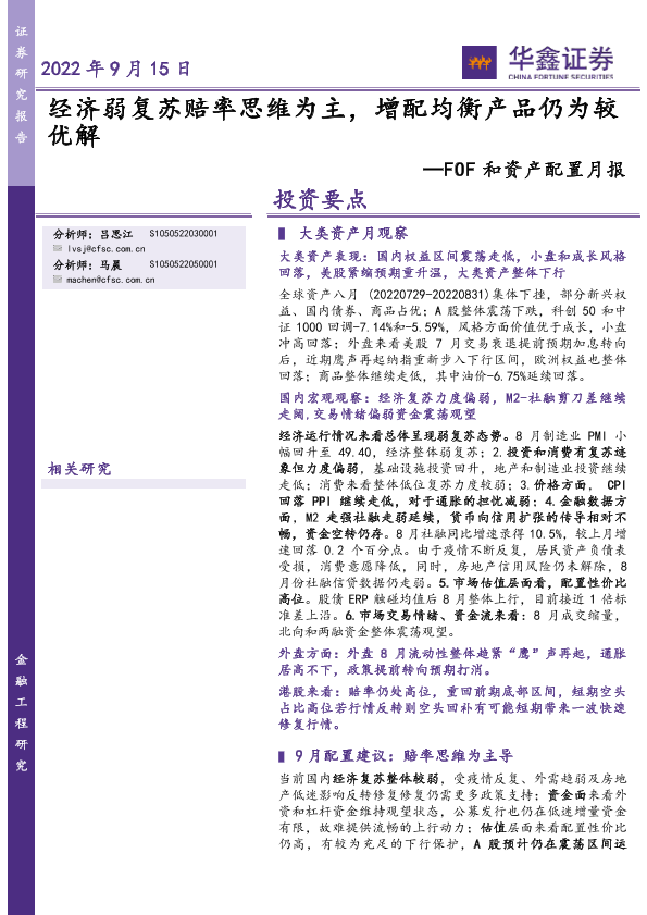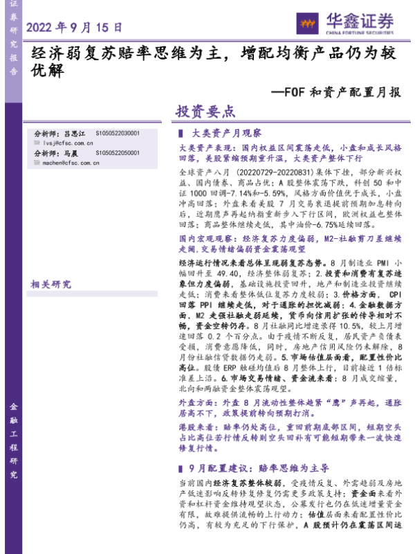 【华鑫证券】【20220915】FOF和资产配置月报:经济弱复苏赔率思维为主,增配均衡产品仍为较优解-35页