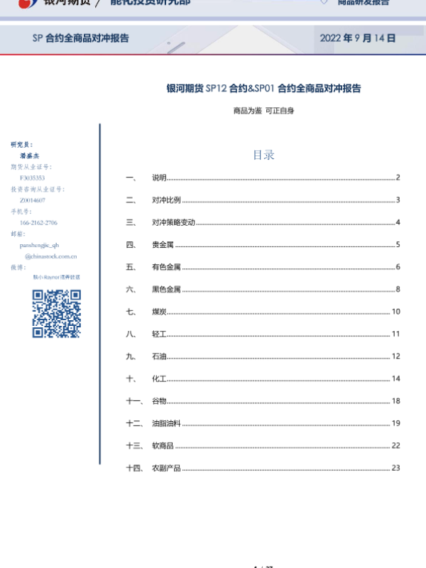 【银河期货】【20220914】SP12合约&SP01合约全商品对冲报告:商品为鉴,可正自身-27页