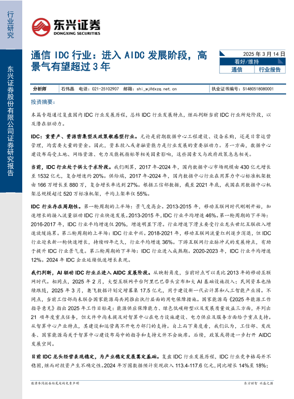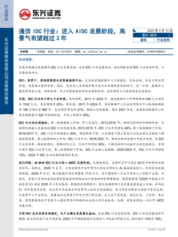 【东兴证券】【20250314】通信IDC行业:进入AIDC发展阶段,高景气有望超过3年-19页