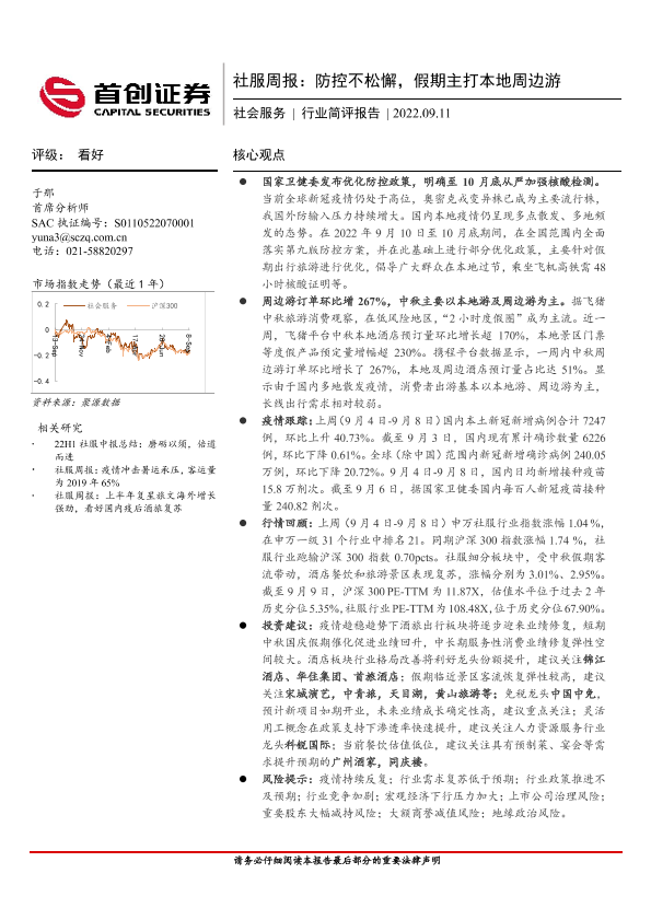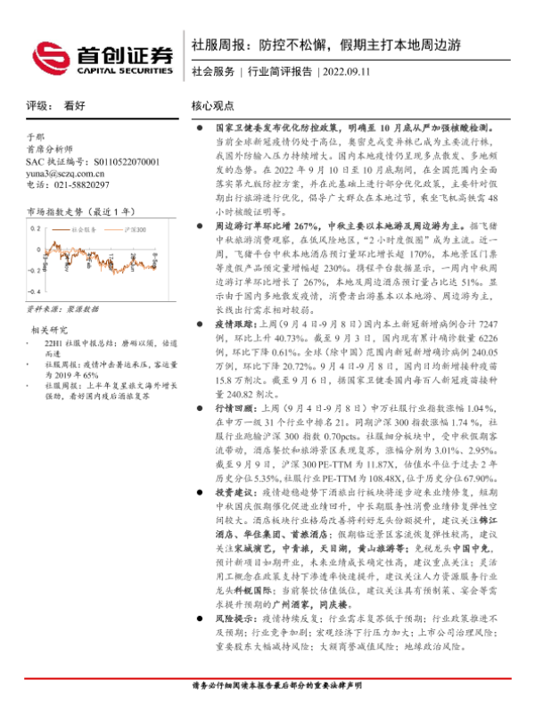 【社会服务行业分析师团队】【20220911】社服周报:防控不松懈,假期主打本地周边游-13页