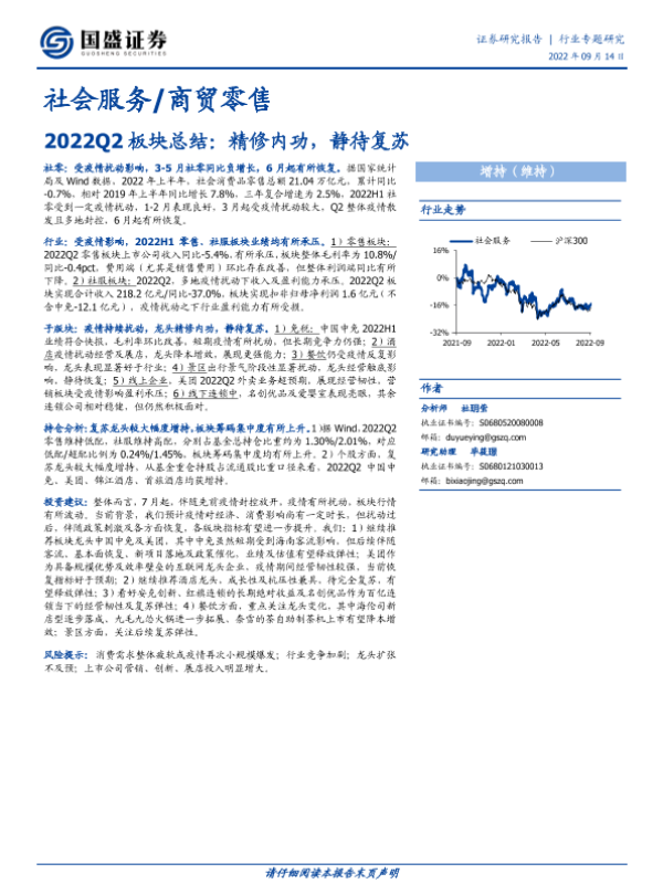 【国盛证券】【20220914】社会服务商贸零售行业2022Q2板块总结:精修内功,静待复苏-27页