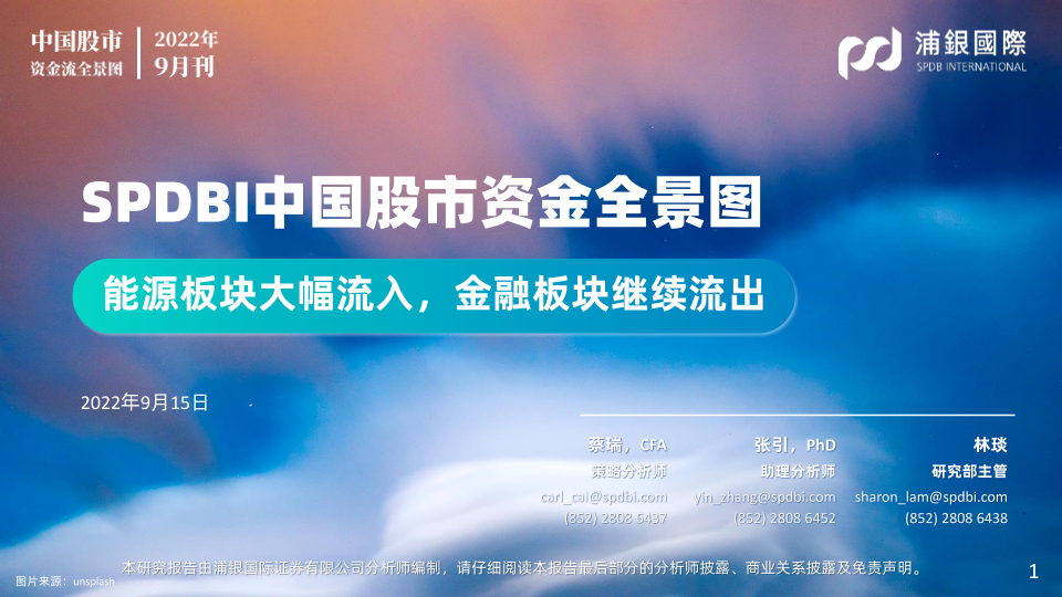 【浦银国际】【20220915】SPDBI中国股市资金全景图2022年9月刊:能源板块大幅流入,金融板块继续流出-60页