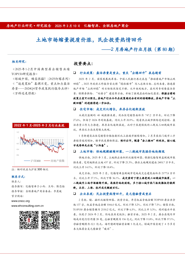 【亿翰智库】【20250310】2月房地产行业月报(第80期):土地市场缩量提质价涨,民企投资热情回升-21页