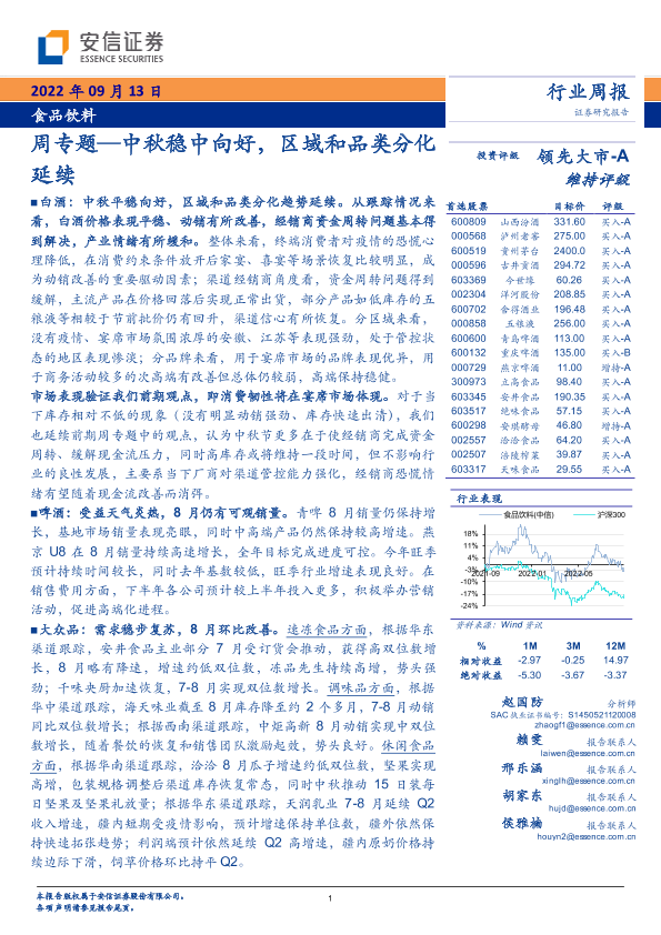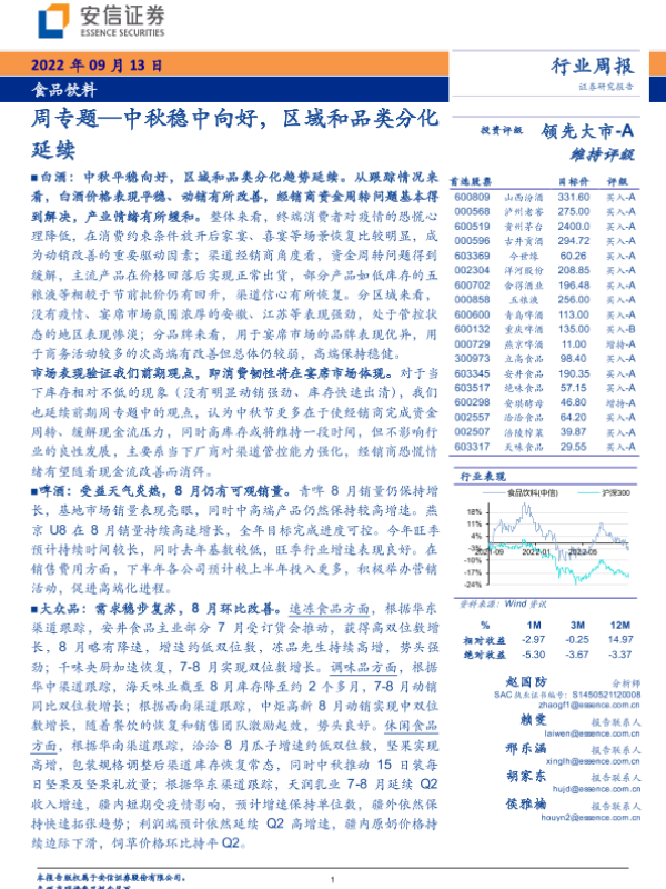 【安信证券】【202209】食品饮料周专题:中秋稳中向好,区域和品类分化延续-20页