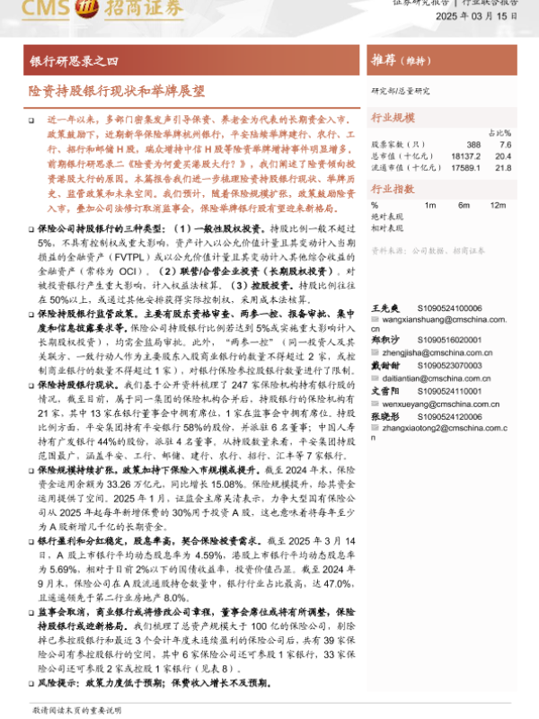 【海通证券】【20250315】银行研思录之四:险资持股银行现状和举牌展望-22页