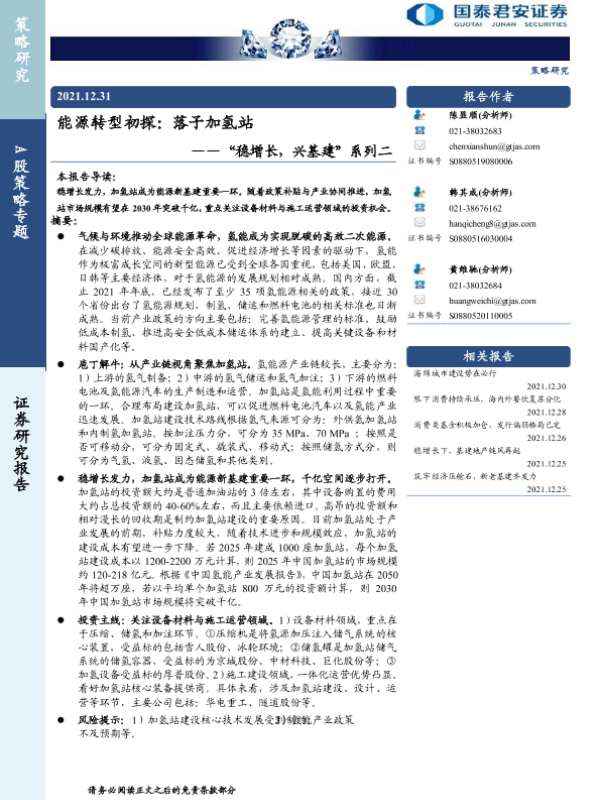 【国泰君安证券】【20211231】“稳增长,兴基建”系列二:能源转型初探,落子加氢站-20页