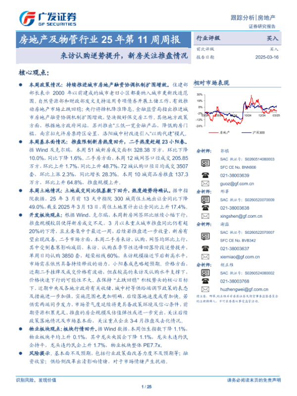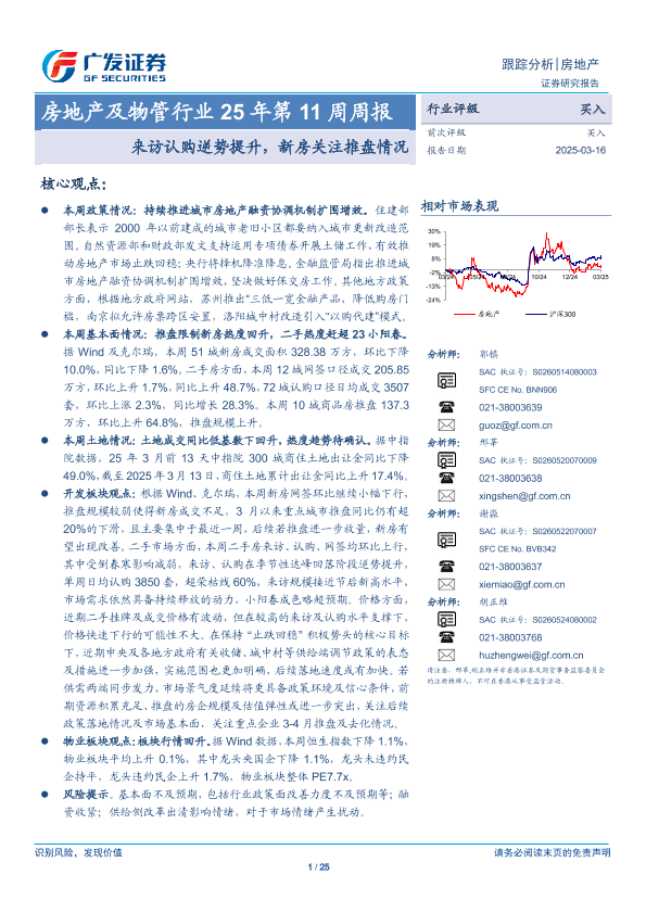 【广发证券】【20250316】房地产及物管行业25年第11周周报:来访认购逆势提升,新房关注推盘情况-25页