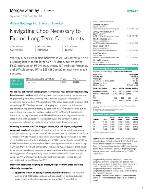 【Morgan Stanley】【20220907】Morgan Stanley-Affirm Holdings Inc Navigating Chop Necessary to Exploit Long-Term Opportunity-19页