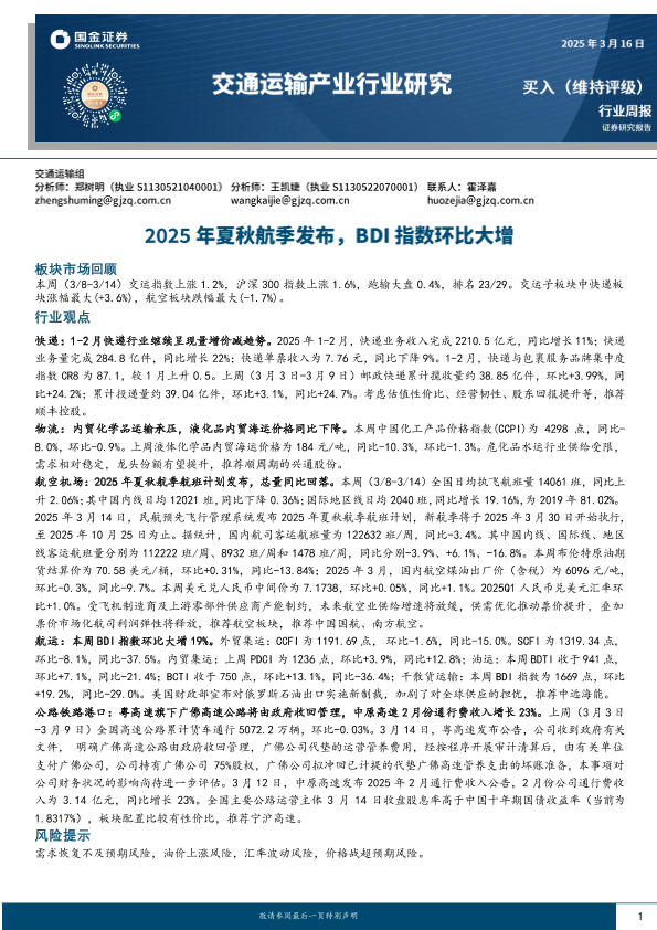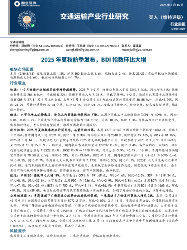 【国金证券】【20250316】2025年夏秋航季发布,BDI指数环比大增-17页