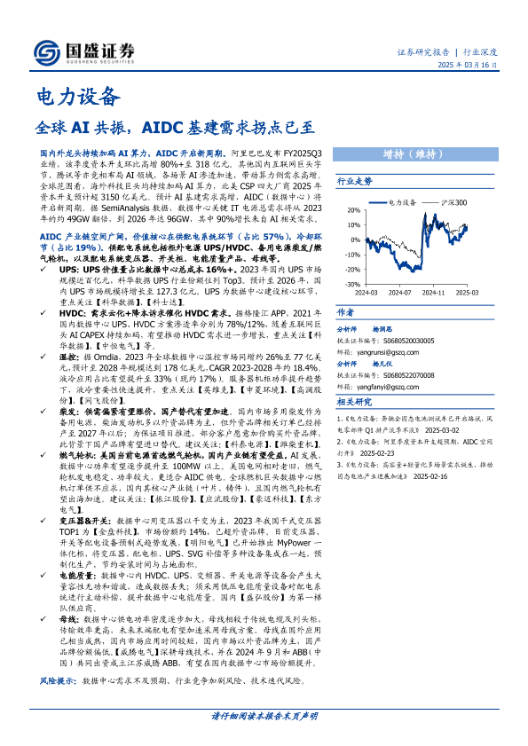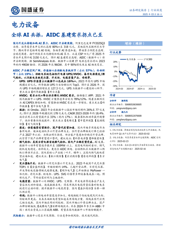 AIDC基建 AI算力 UPS 数据中心 电力设备