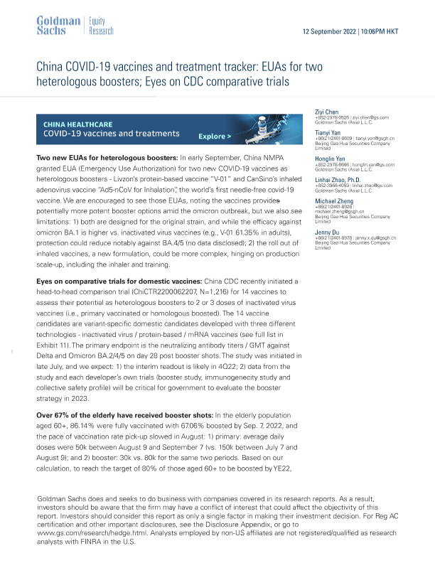 【Goldman Sachs】【20220912】acker_ EUAs for two heterologous boosters; Eyes on CDC comparative trials-19页