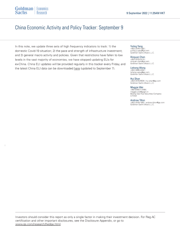 【Goldman Sachs】【20220909】China Economic Activity and Policy Tracker September 9-11页