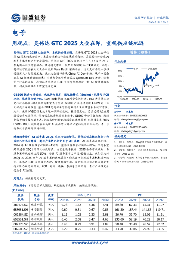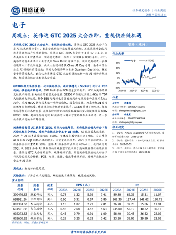 【国盛证券】【20250316】电子周观点:英伟达GTC 2025大会在即,重视供应链机遇-19页