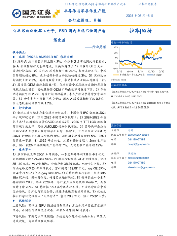 【国元证券】【20250316】订单落地刺激军工电子,FSD国内表现不佳国产智驾受益-10页