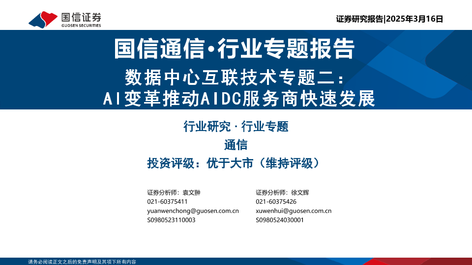 【国信证券】【20250316】数据中心互联技术专题二:AI变革推动AIDC服务商快速发展-66页