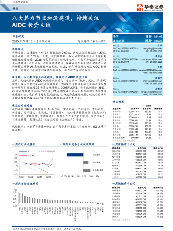 【华泰证券】【20250316】20250316-华泰证券-科技行业周报(第十一周):八大算力节点加速建设,持续关注AIDC投资主线-15页
