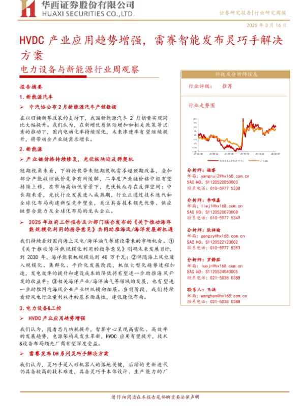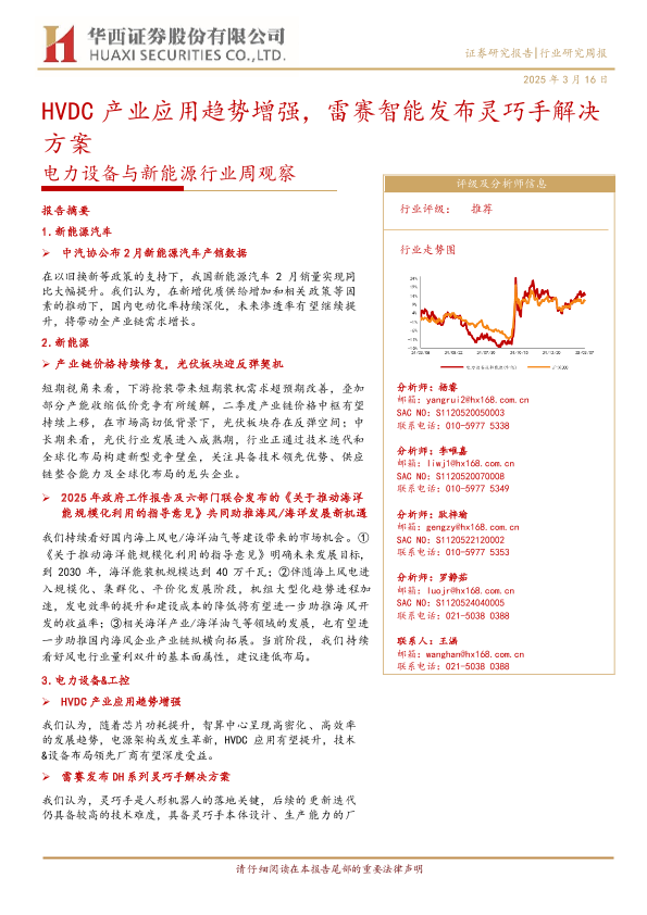 【华西证券】【20250316】20250316-华西证券-电力设备与新能源行业周观察:HVDC产业应用趋势增强,雷赛智能发布灵巧手解决方案-28页