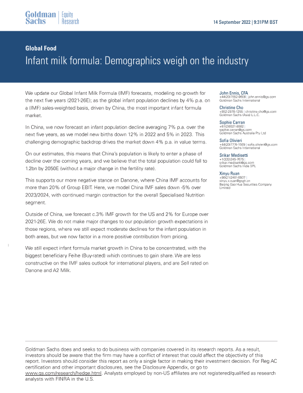 【Goldman Sachs】【20220914】Global Food_ Infant milk formula_ Demographics weigh on the industry-26页