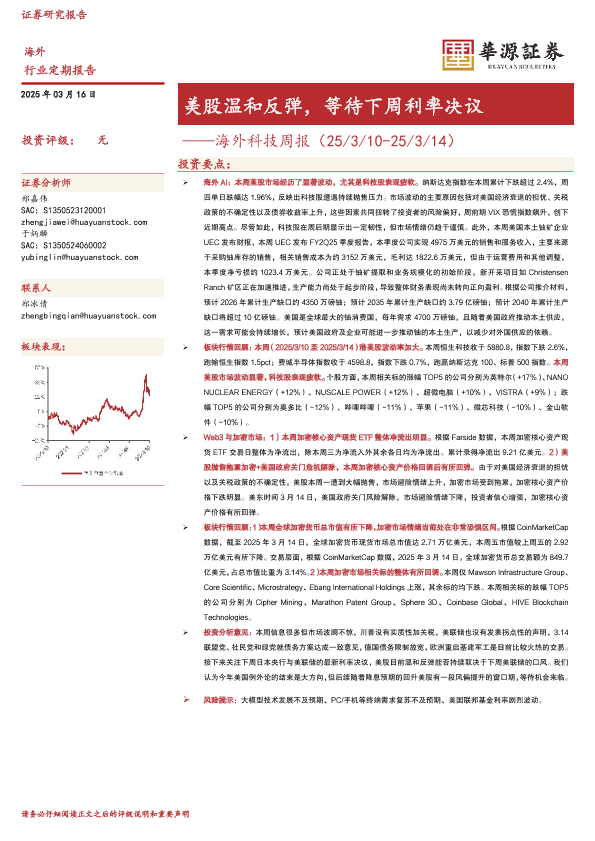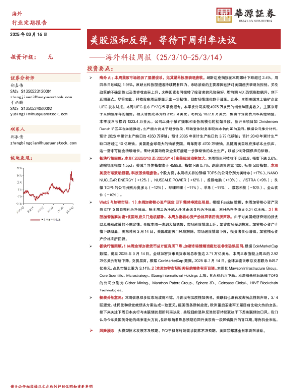 【华源证券】【20250316】海外科技周报:美股温和反弹,等待下周利率决议-13页