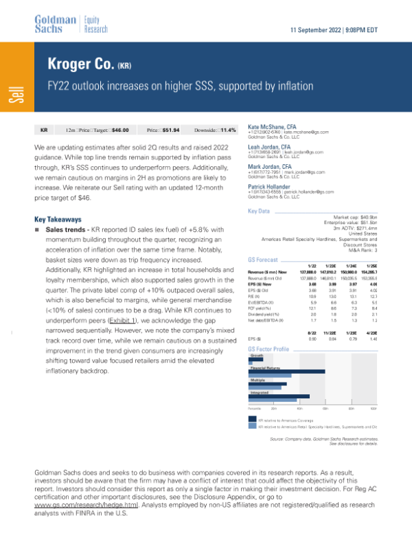 【Goldman Sachs】【20220911】er Co. (KR)_ FY22 outlook increases on higher SSS, supported by inflation-8页