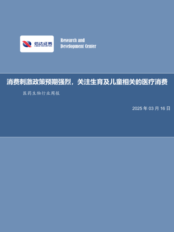 【信达证券】【20250316】20250316-信达证券-医药生物行业周报:消费刺激政策预期强烈,关注生育及儿童相关的医疗消费-17页