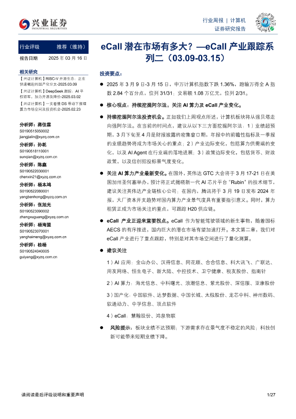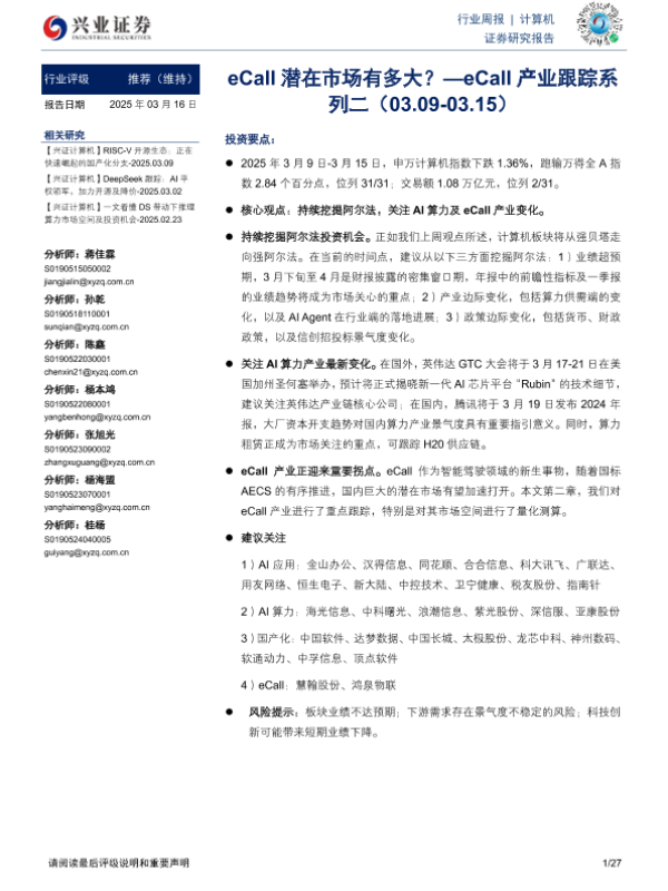 【兴业证券】【20250316】20250316-兴业证券-计算机行业周报:eCall产业跟踪系列二-eCall潜在市场有多大?-27页