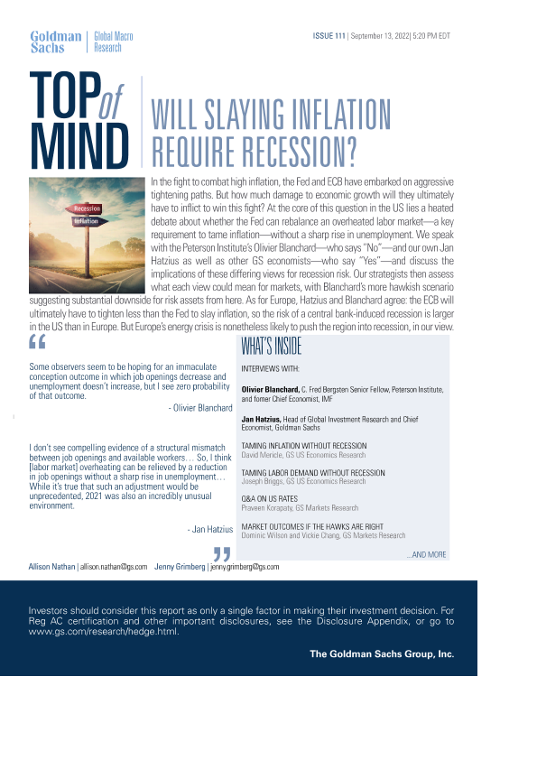 【The Goldman Sachs Group&Inc.】【20220913】Will slaying inflation require recession?-25页