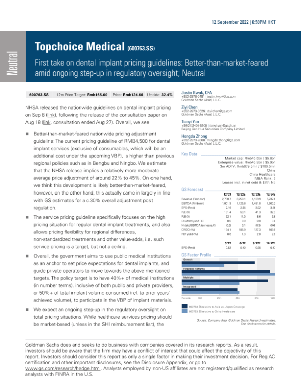 【Goldman Sachs】【20220912】implant pricing guidelines Better-than-market-feared amid ongoing step-up in regulatory oversight-12页