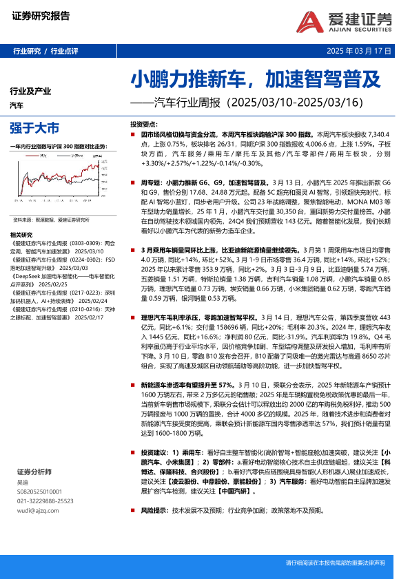 【爱建证券】【20250317】20250317-爱建证券-汽车行业周报:小鹏力推新车,加速智驾普及-20页