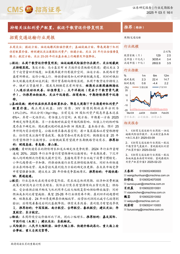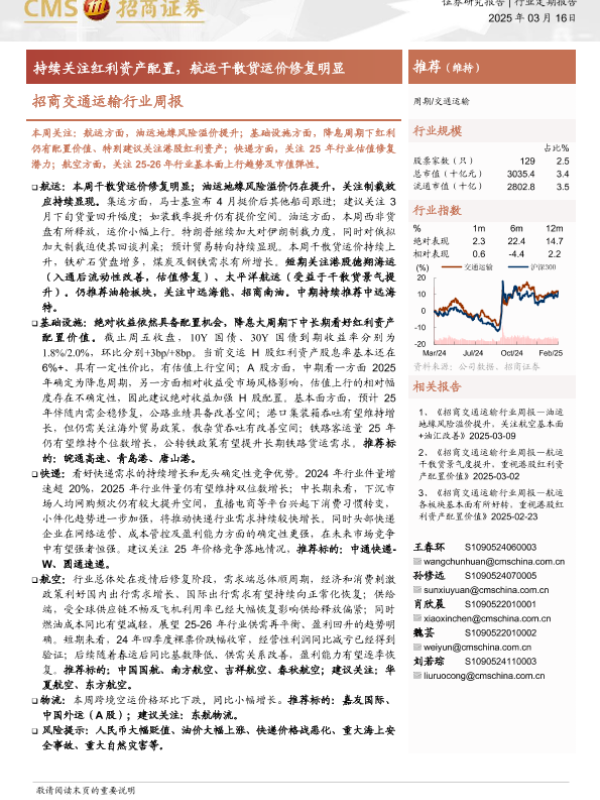 【海通证券】【20250316】招商交通运输行业周报:持续关注红利资产配置,航运干散货运价修复明显-15页