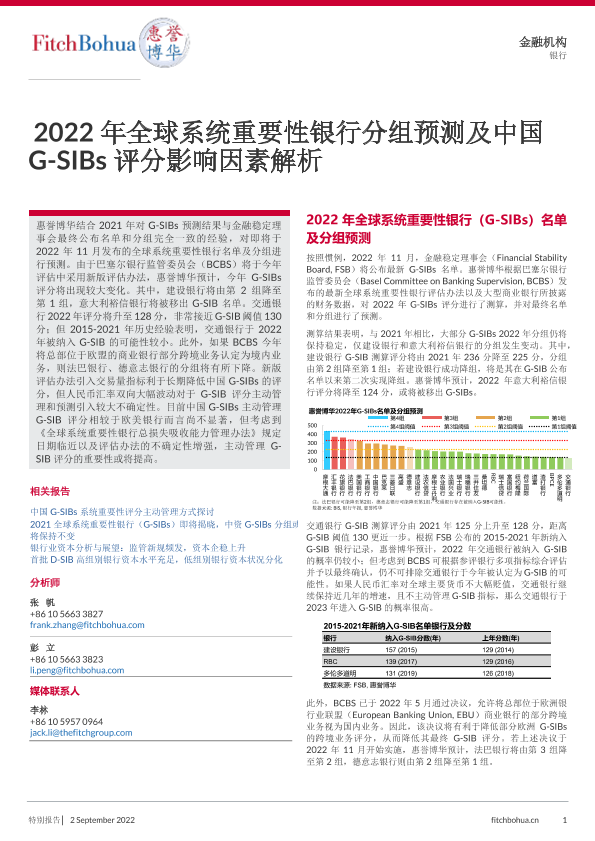 【惠誉博华】【20220902】2022年全球系统重要性银行分组预测及中国G-SIBs评分影响因素解析-7页