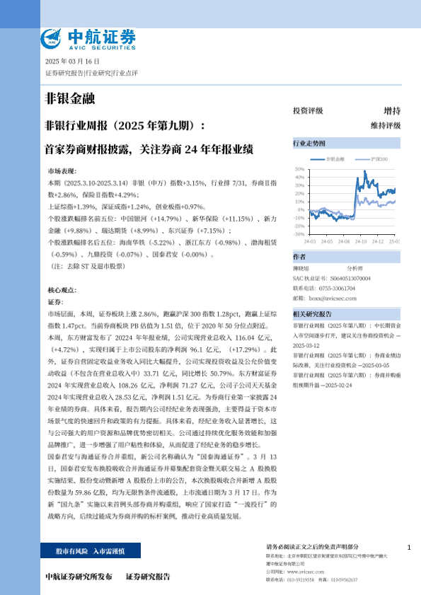 【中航证券】【20250316】非银行业周报(2025年第九期):首家券商财报披露,关注券商24年年报业绩-10页