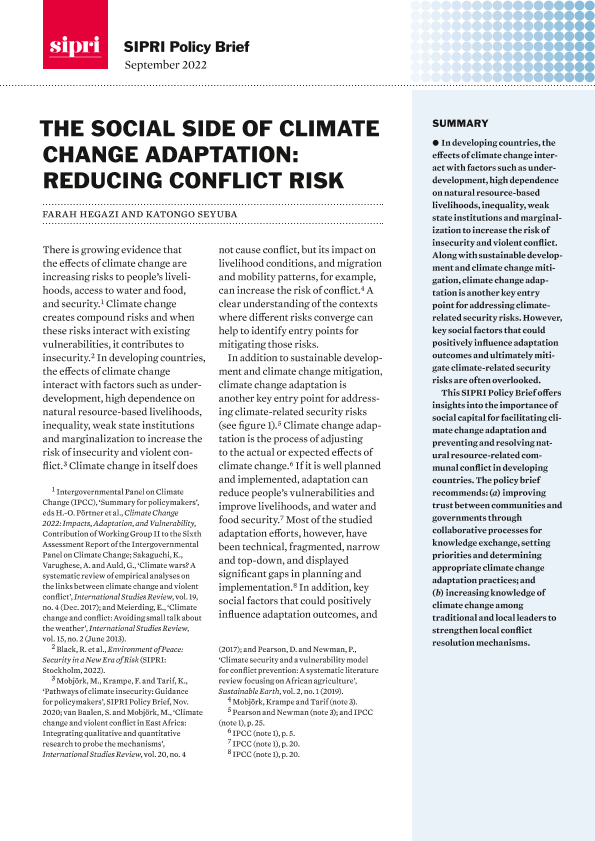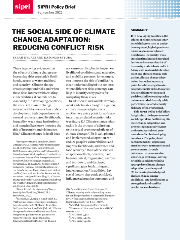 【斯德哥尔摩国际和平研究所 (SIPRI)】【202209】斯德哥尔摩国际和平研究所-气候变化适应的社会方面:减少冲突风险-8页