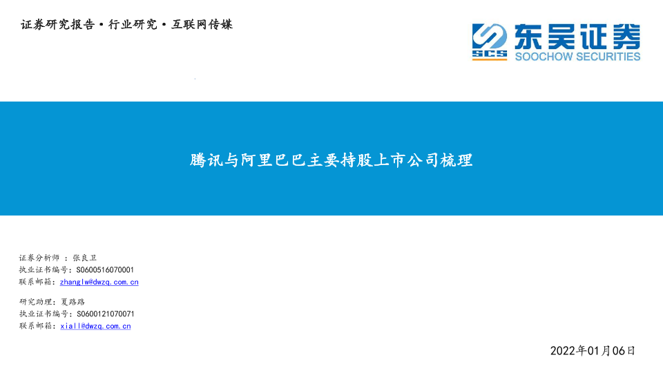 【东吴证券】【20220106】互联网传媒行业:腾讯与阿里巴巴主要持股上市公司梳理-19页