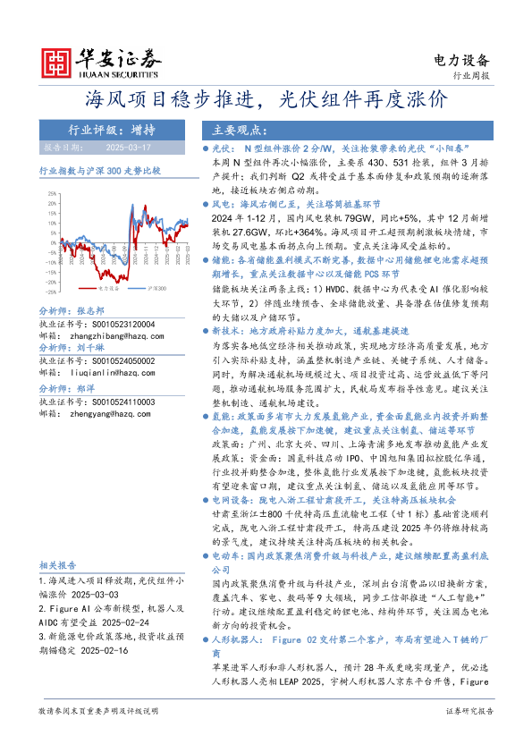 【华安证券】【20250317】20250317-华安证券-电力设备行业周报:海风项目稳步推进,光伏组件再度涨价-17页
