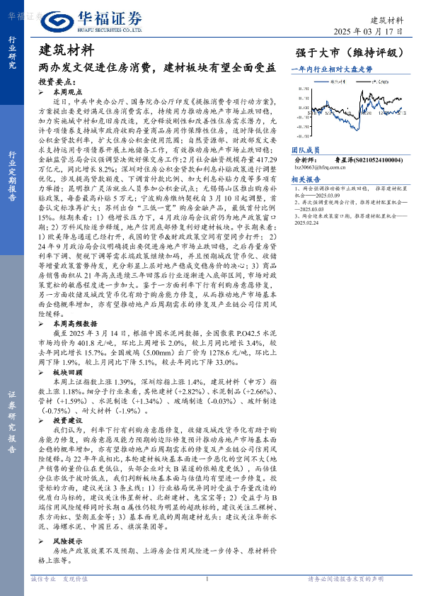 【华福证券】【20250317】建筑材料:两办发文促进住房消费,建材板块有望全面受益-11页